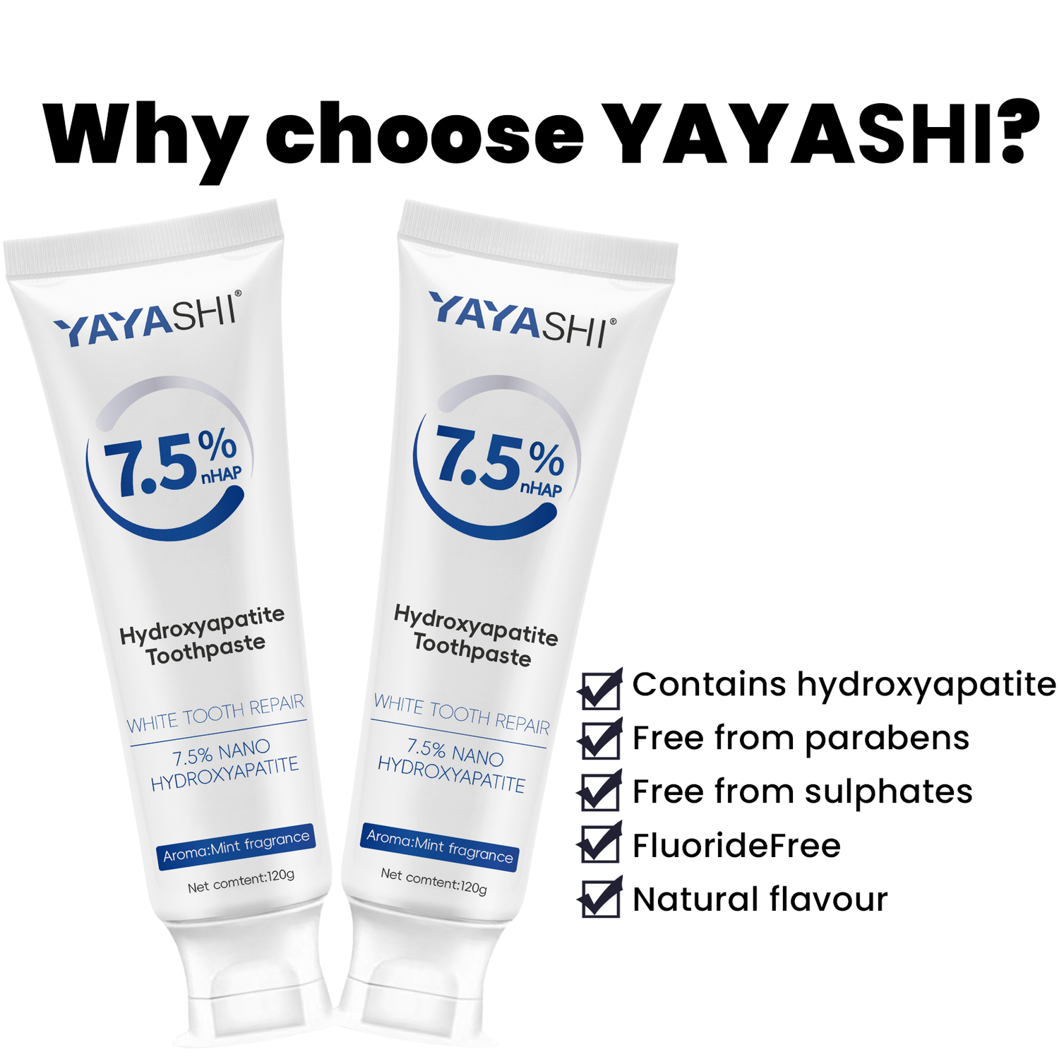YAYASHI 7.5% Hydroxyapatite Toothpaste for Enamel Protection and Tooth Strengthening