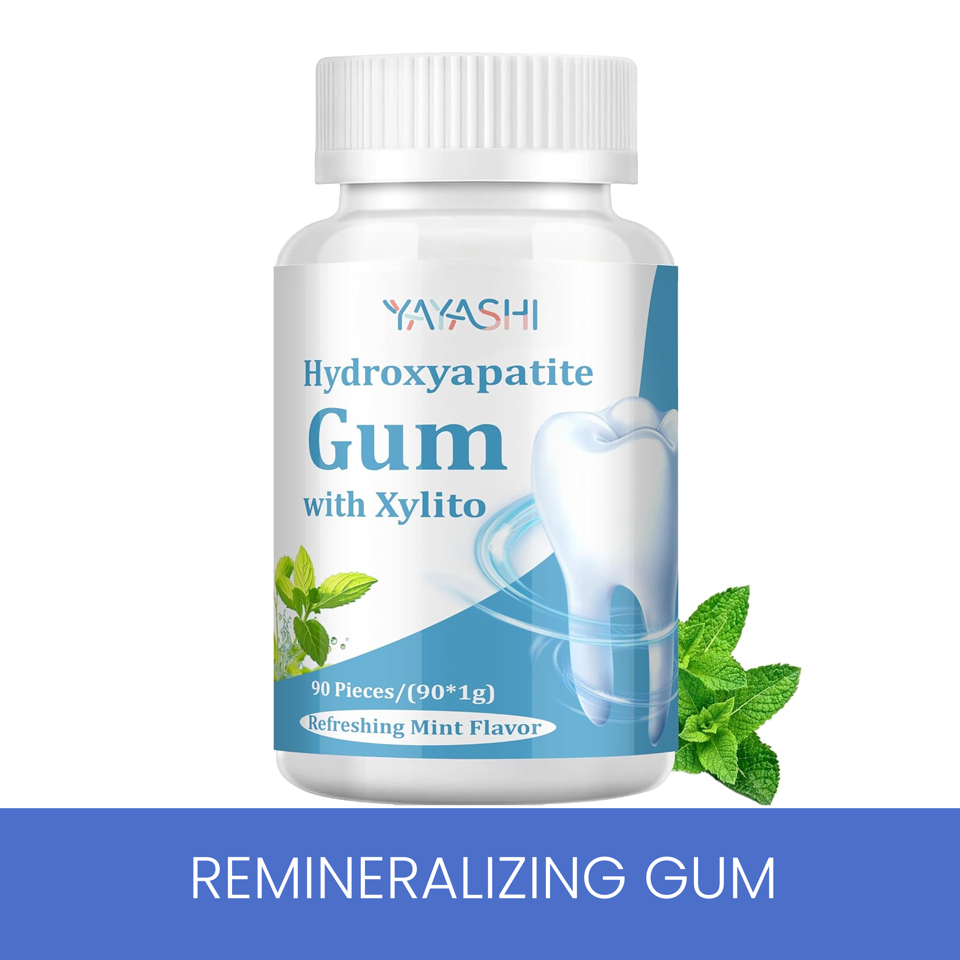 Hydroxyapatite Gum – Remineralizing Gum with Non-Nano Hydroxyapatite & Xylitol, Sugar-Free Mint Chewing for Fresh Breath