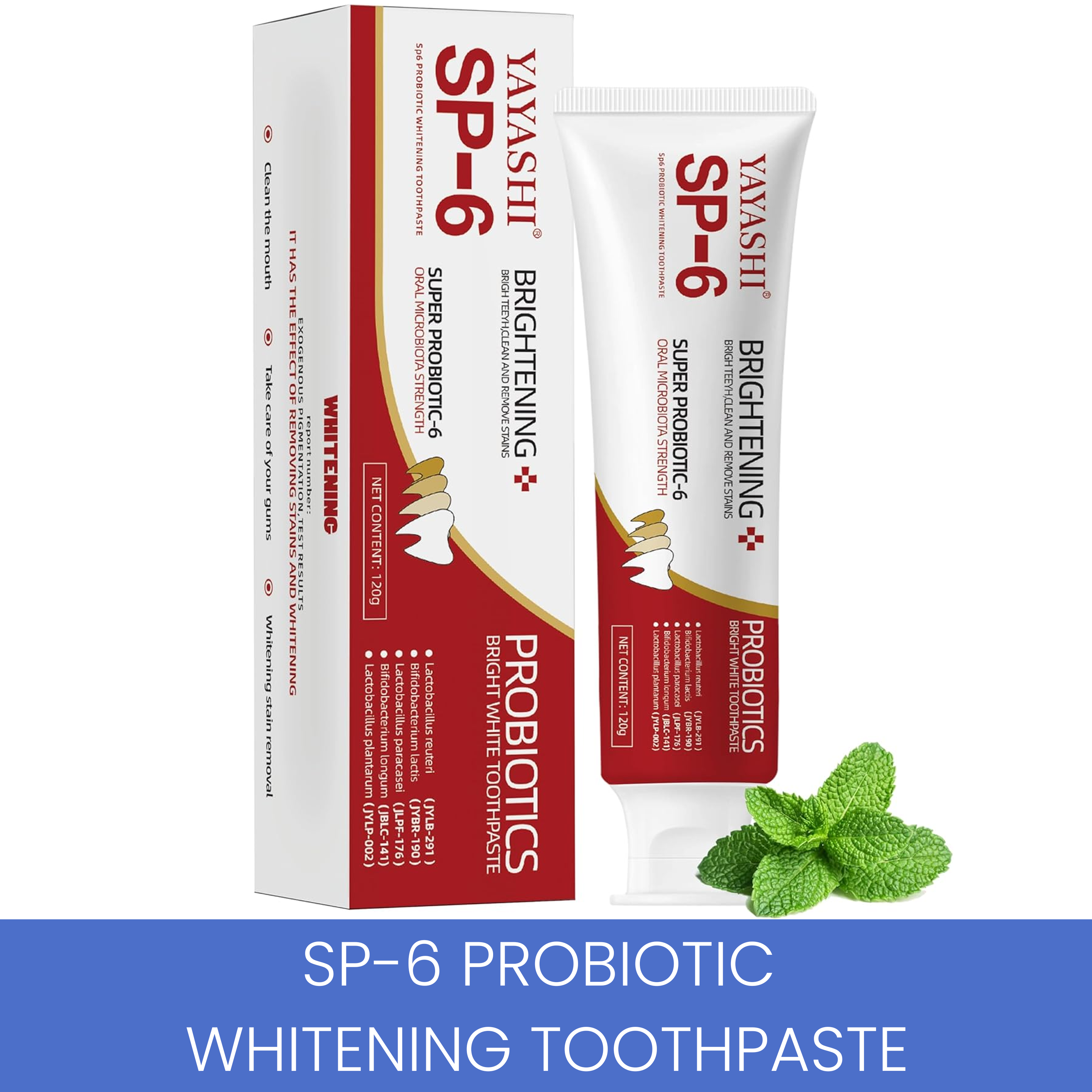 YAYASHI SP-6 Probiotic Whitening Toothpaste – Advanced Formula with 6 Probiotics for Brighter Teeth & Healthier Gums, Enamel-Friendly, Fresh Peppermint, Long-Lasting Clean
